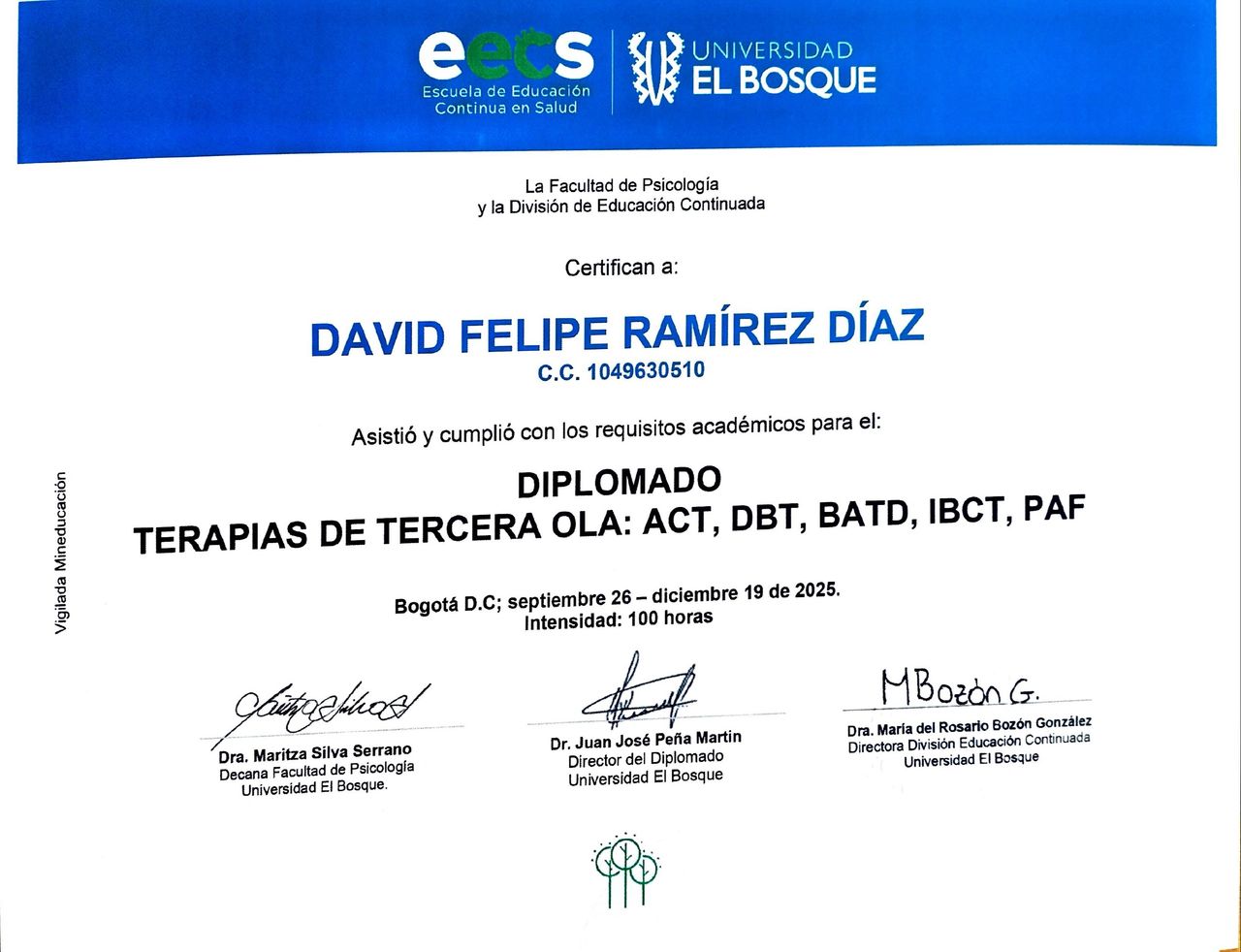 Me dedico a la atención psicoterapéutica desde hace 9 años. Soy especialista en psicología clínica, con enfoque en terapias de tercera ola. Estoy aquí para apoyarte en tu proceso de autoconocimiento y en tu cambio. Si tienes dudas, escríbeme.